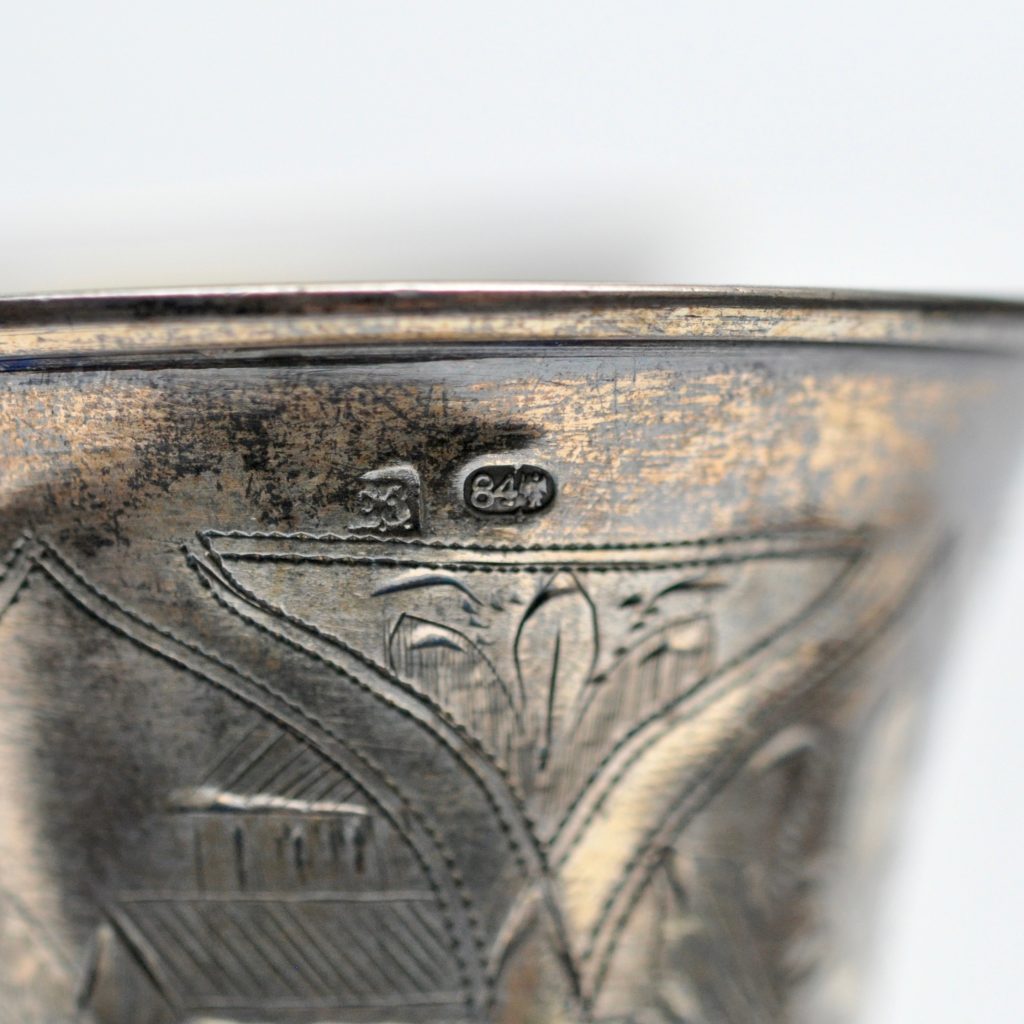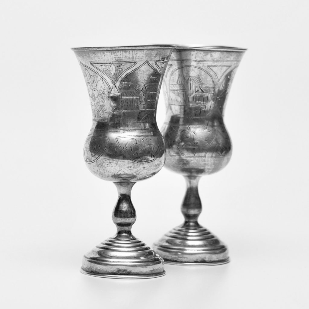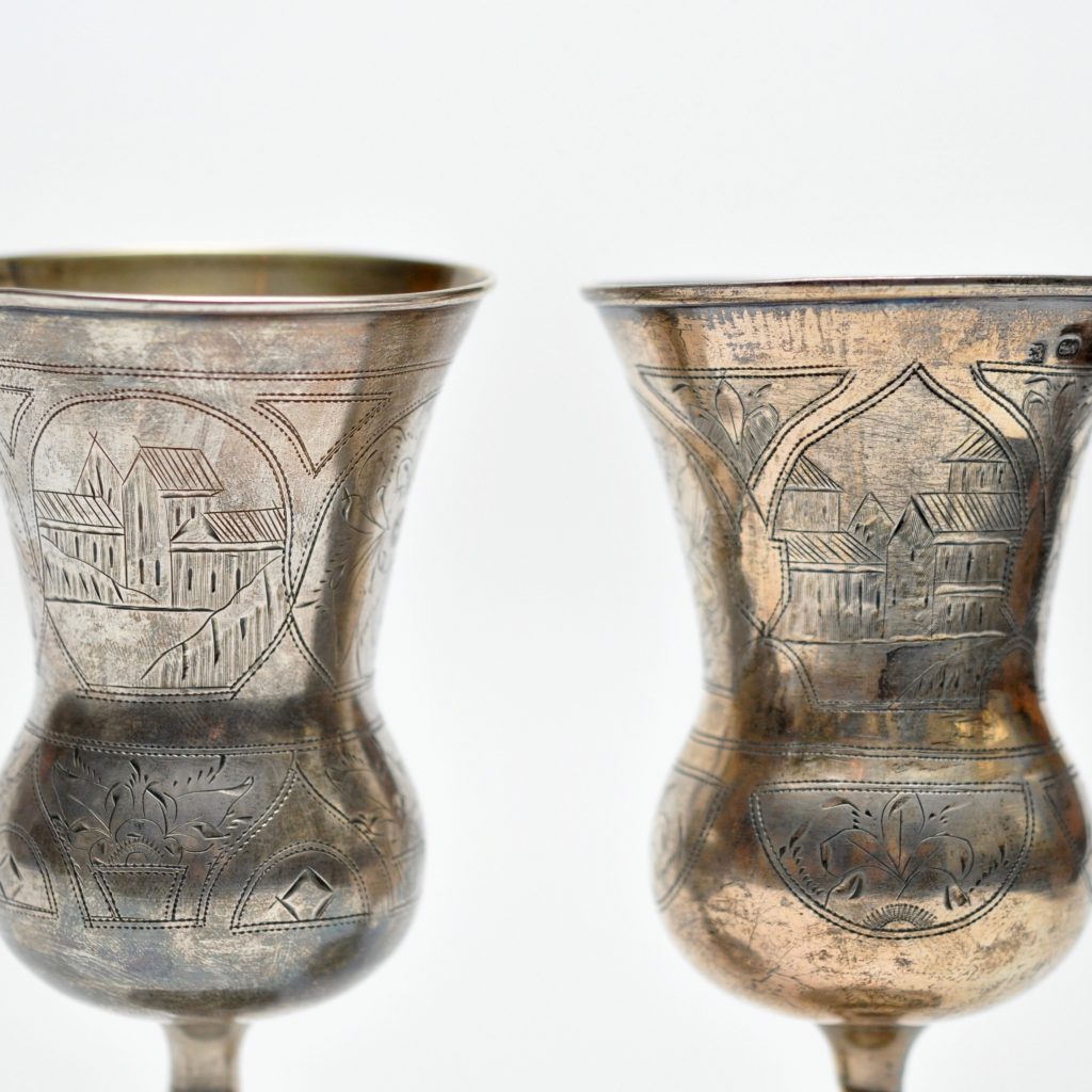 Kiduši bokaali paar. Meister Sahoder. I.E. Kiiev Kaal 87,2 ja 82,9 gr h 14 cm