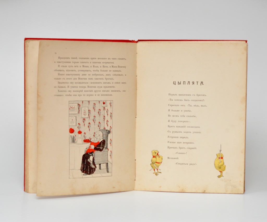 Соловьева П. и Манасеина Н. Красное яичко. Рассказы, сказки, стихи, картинки и загадки для маленьких детей СПб Книгоиздательство Тропинка 1913г. 64с. увеличенный формат
