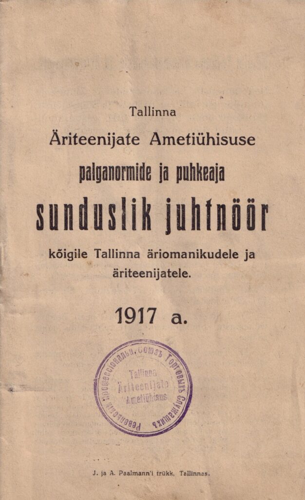 Äriteenijate Ametiühisuse palganormide ja puhkaja sunduslik juhtnöör 1917