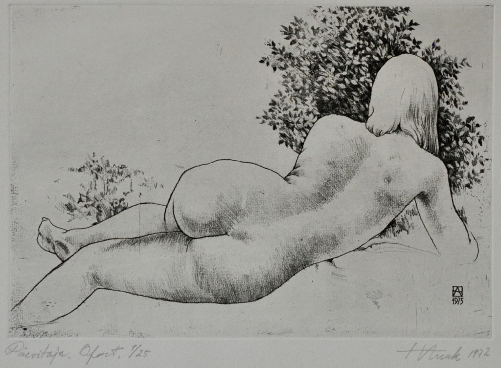 “Päevitaja” 1972 ofort 1/25 leht 31×38 cm kujutis 19×27 cm