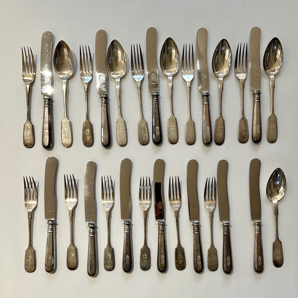 Ag 875 üldkaal 12 nuga,11 kahvlit,6 lusikat Kaal 1078 gr noad 1115 gr üldkaal 2193 gr
