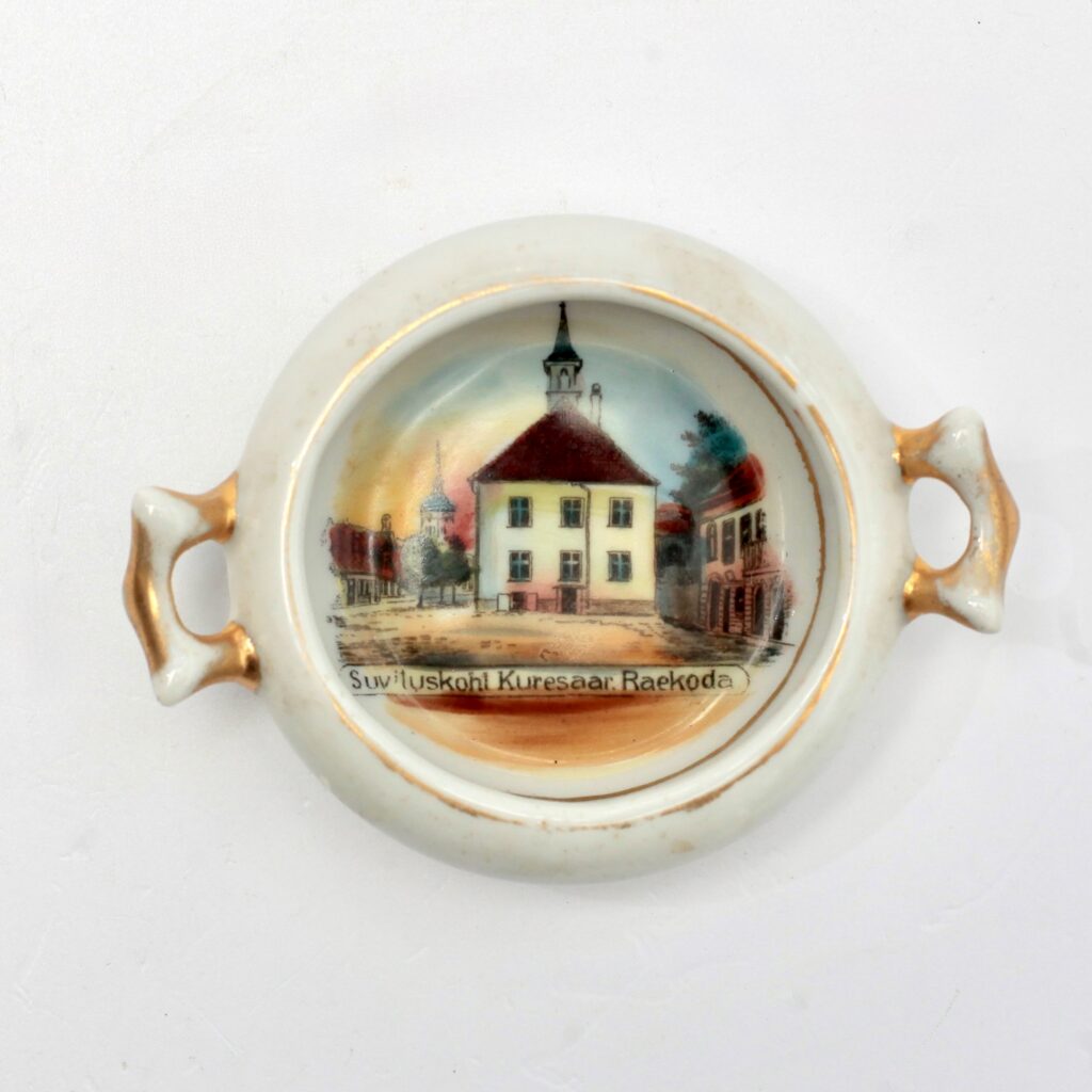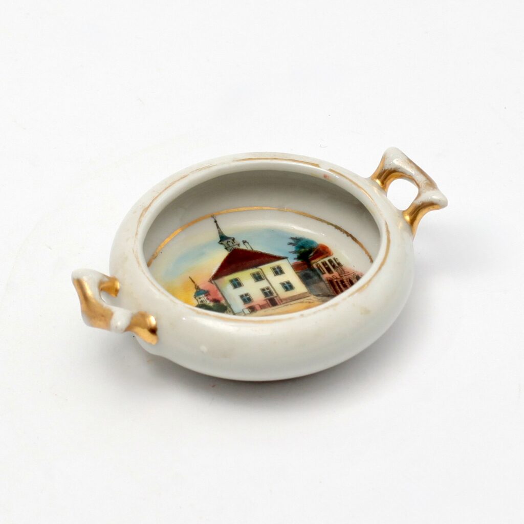 Portselan suveniir d 70 mm sangadega 90 mm h 25 mm. Tootjamärgis puudub.