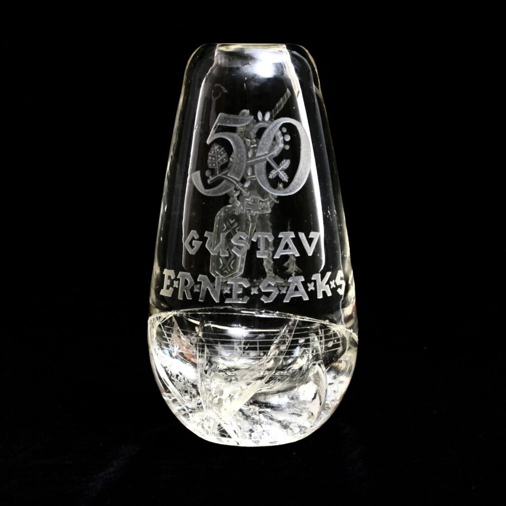 Vaas. h 188 mm laiem d 100 mm. Vaas on arvatavasti kukkunud maha, põhi mõranenud. Kingitus Gustav Ernesaksale