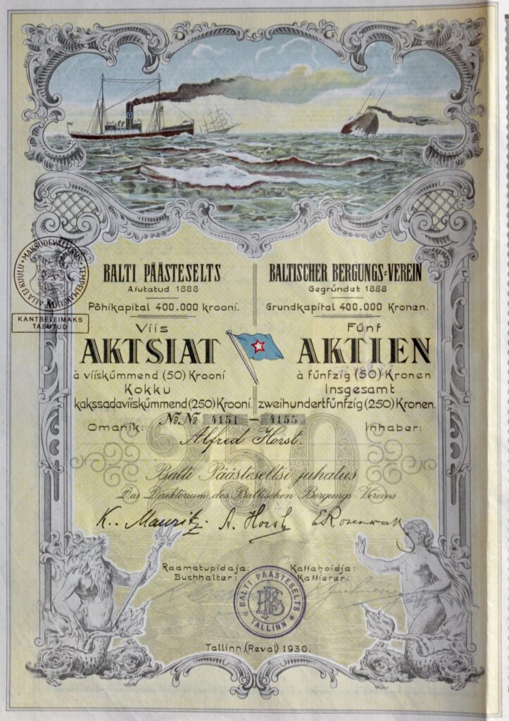 Baltischer Bergungs-Verein Gegründet 1888 / Balti Päästeselts Asutatud 1888