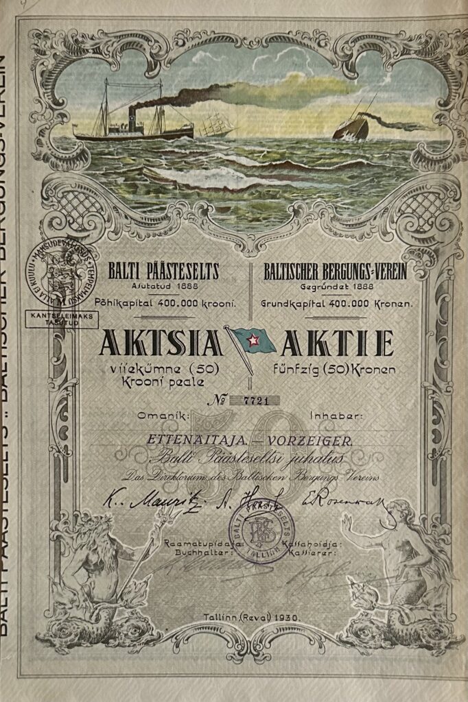 50806. Balti Päästeseltsi 50 aksiat 1930 Tallinn