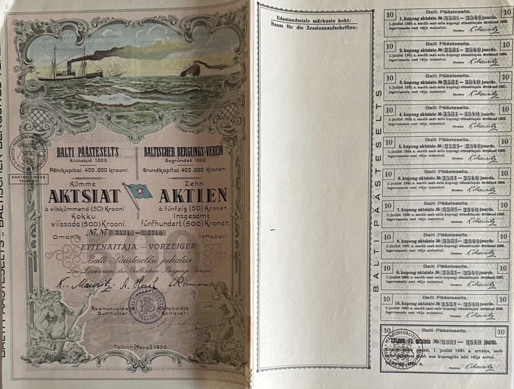 Baltischer Bergungs-Verein Gegründet 1888 / Balti Päästeselts Asutatud 1888