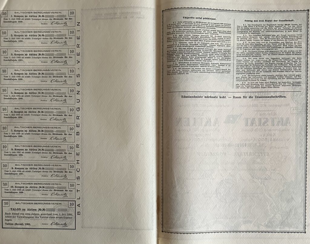 Väga haruldlane aktsia. Rahvusvaheliselt hinnatud R10!