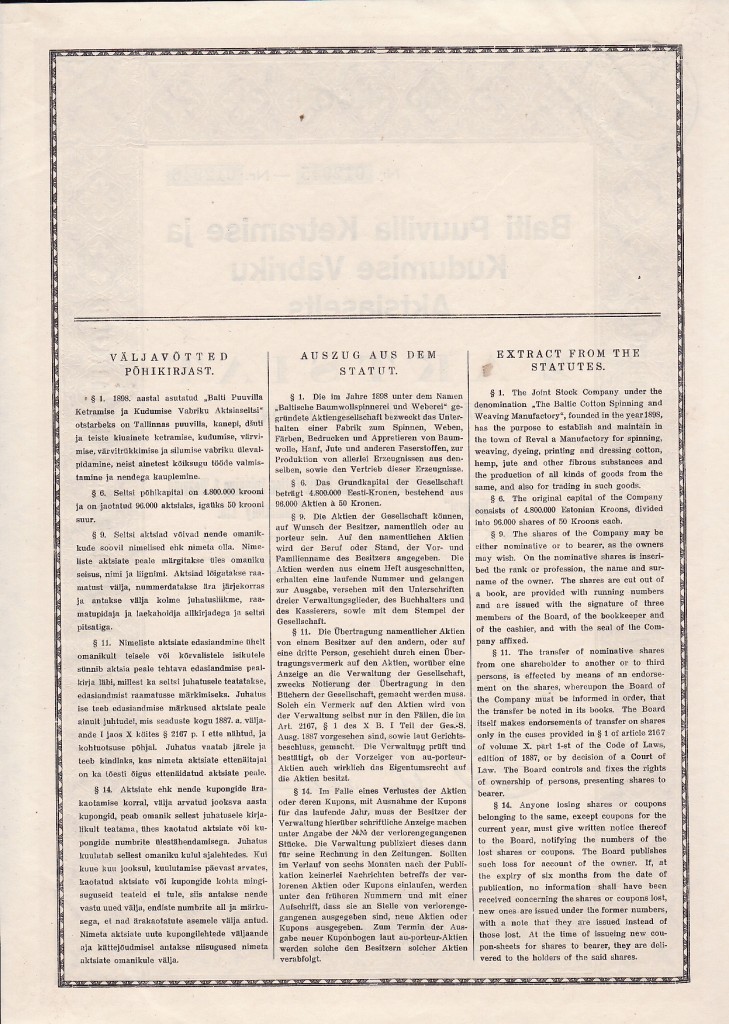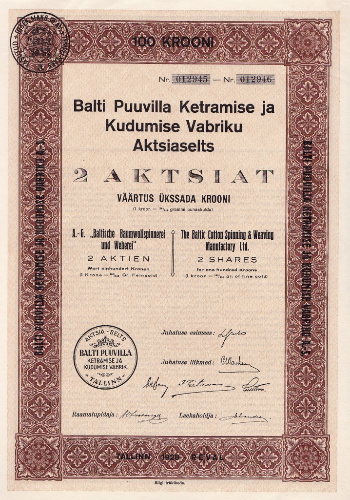 Balti Puuvilla Ketramise ja Kudumise Vabriku Aktsiaselts 2 Aksiat