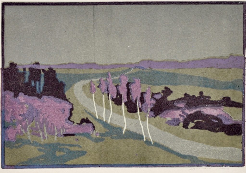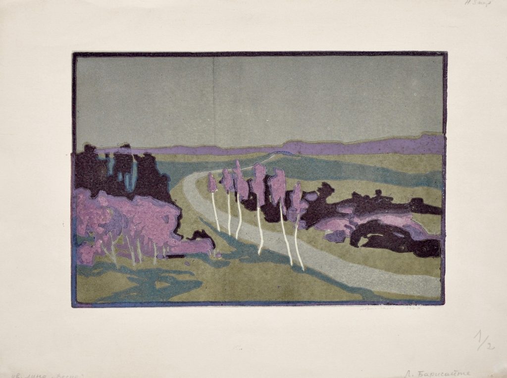 “Kevad” värviline linool 1960 Lm: 32×43 km 21×31 cm Leedu graafiku kingitus Henn Sarapile.