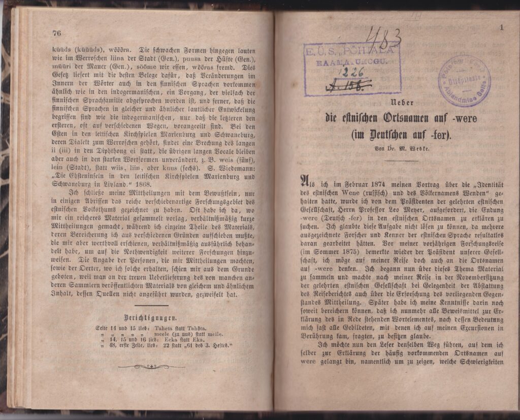 50122. Bericht über die Ergebnisse einer Reise durch das Estenland im Sommer 1875