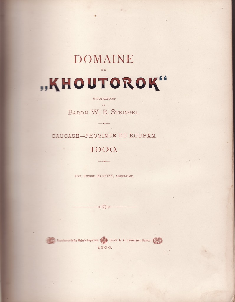 Domaine Khoutorok Appartenant Baron W.R. Steingel 1900