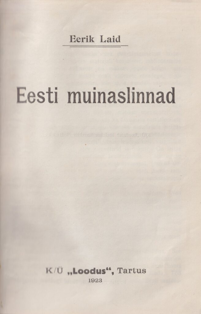 Eesti muinaslinnad / Eerik Laid ; [eessõna: A. M. Tallgren]