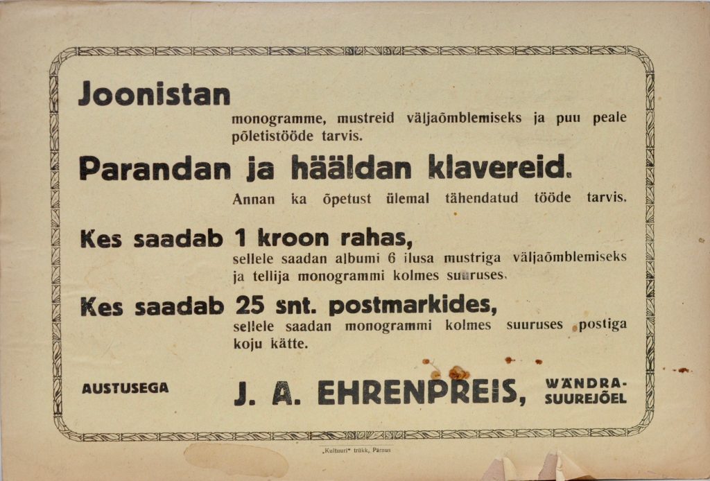 EV leiduvate suurte kivide album. J.A. Ehrenppreis