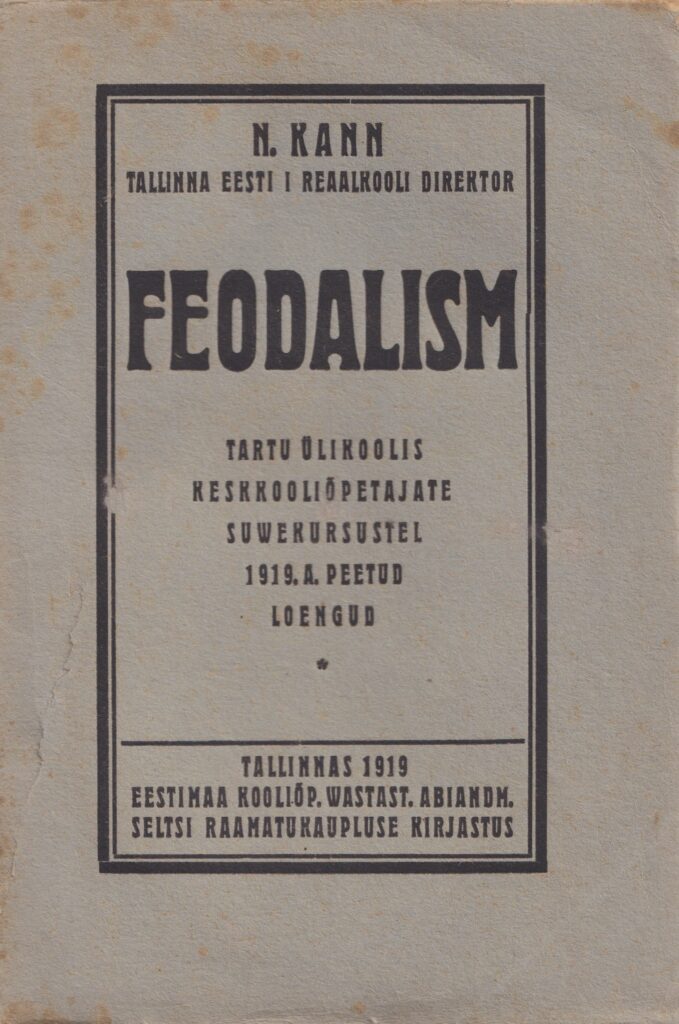 Feodalism : Tartu ülikoolis keskkooliõpetajate suwekursustel 1919. aastal peetud loengud / N. Kann |