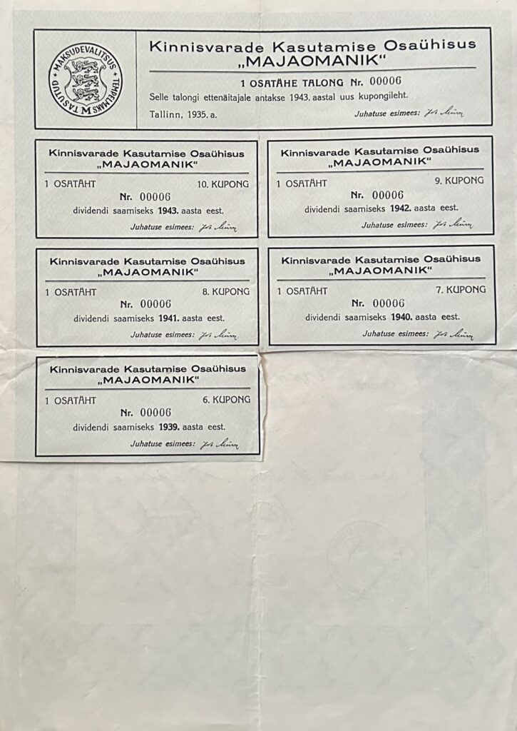 Kinnisvarade kasutamise osaühisus “Majaomanik” 1935