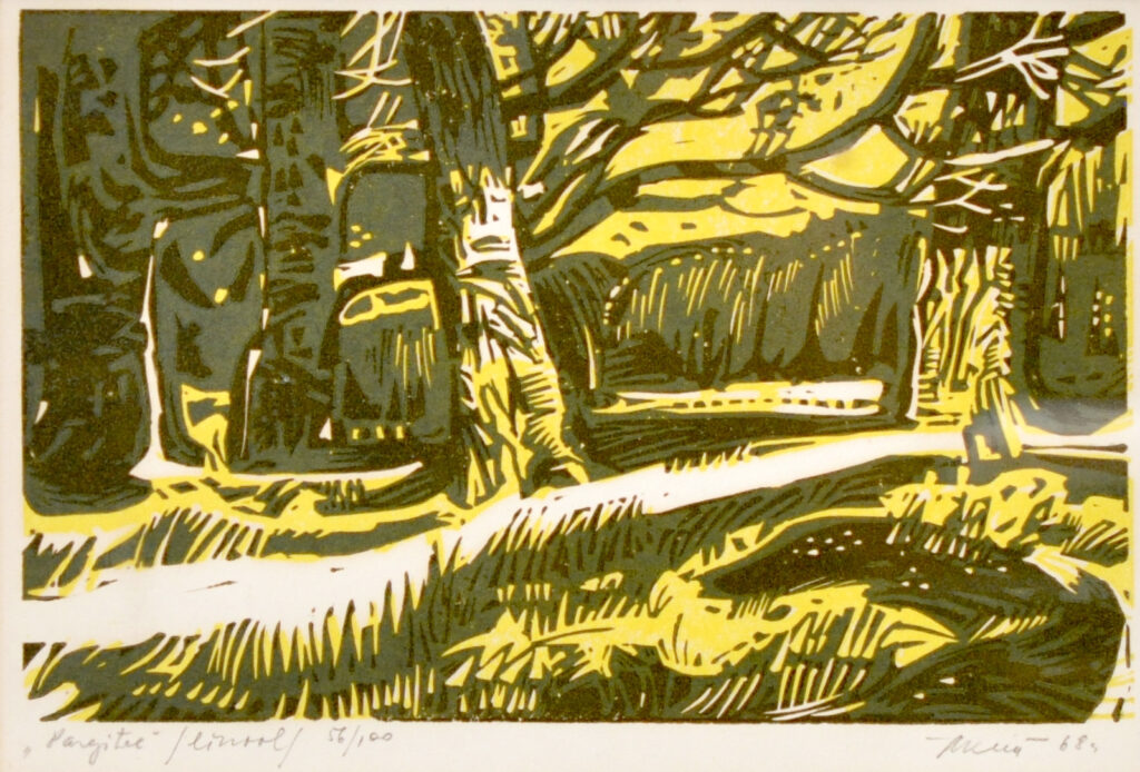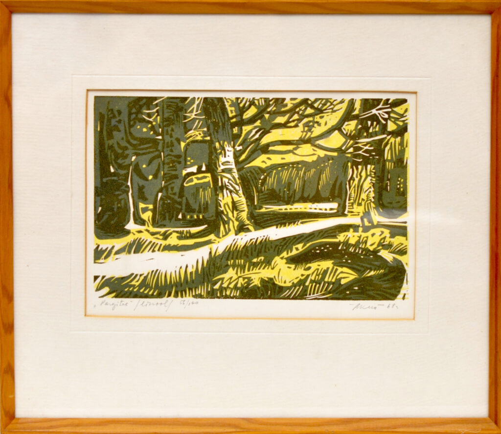 “Pargitee” linool 56/100 1968 ava 17×24 raamiga 32×38 cm