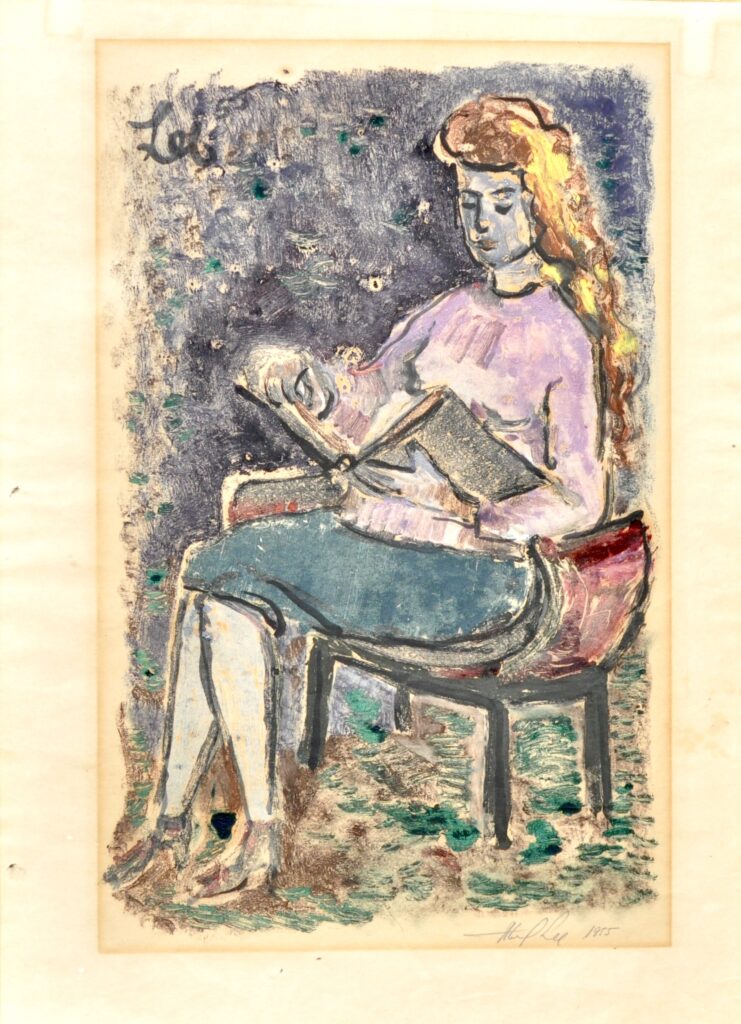 “Lugemas” monotüüpia 1957 48×30,5 keht 56×40 cm