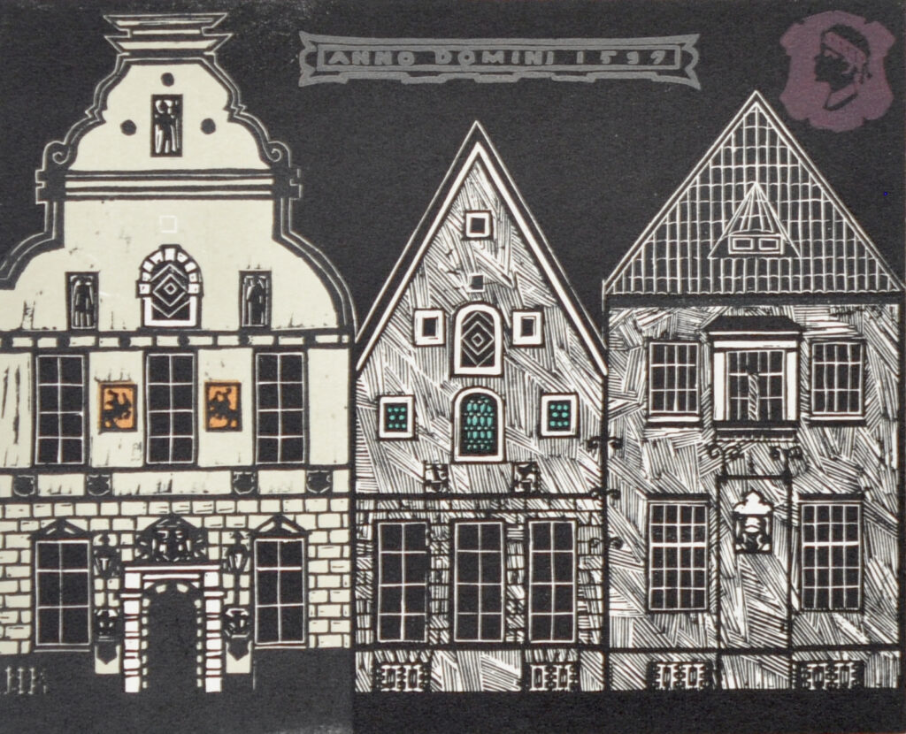 “Mustpeade ja Oleviste gildi hooned” linool 1967 20×25 , 30×35 cm PROOV!