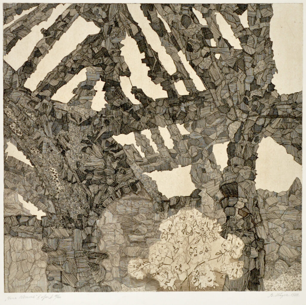 “Vana Nõmme II” ofort 1972 11/40 leht 53×52 kujutis 37×38 cm