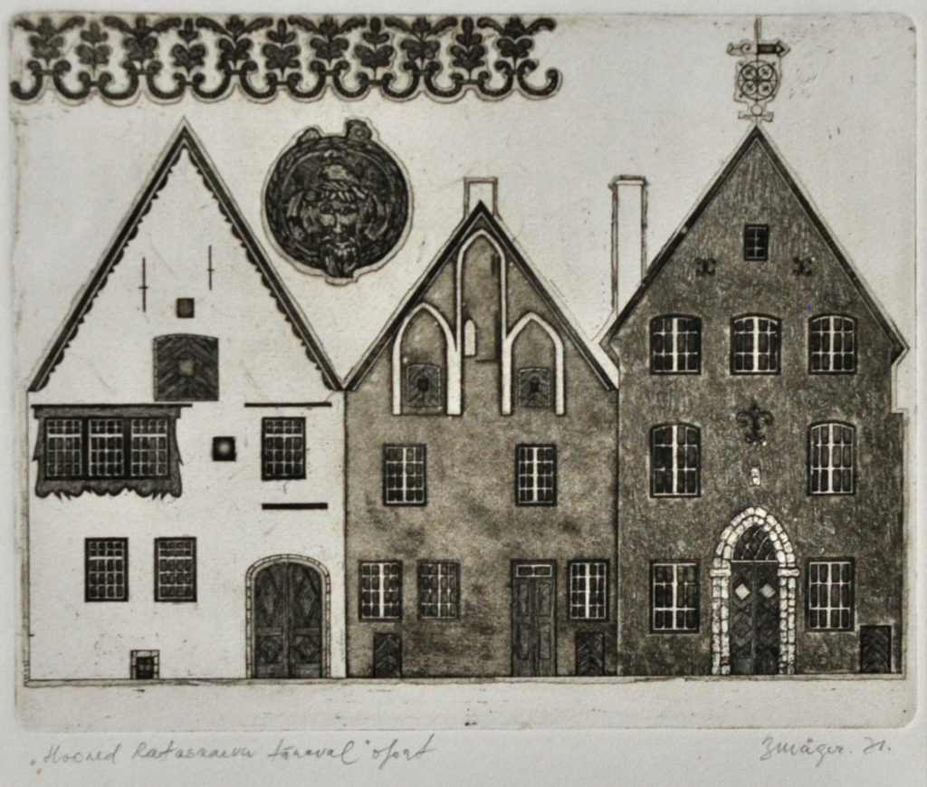 “Hooned Rataskaevu tänaval ” ofort 1971 plm 17×21 cm paber 30x23cm