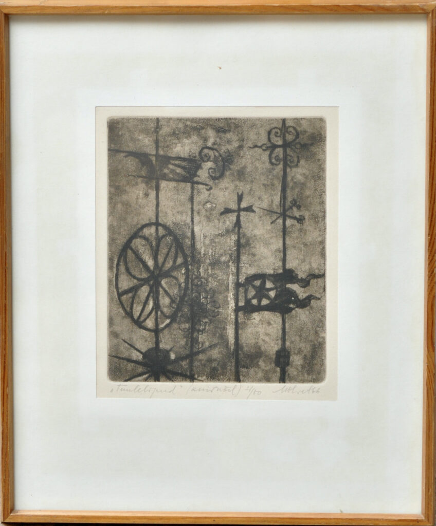 “Tuulelipud” kuivnõel 1966 ava 20×25 cm raamiga 36×29 cm