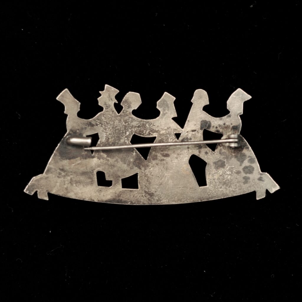 Salme Raunami 1959. aastal valmistatud pross „Pidu“. 3×6 cm