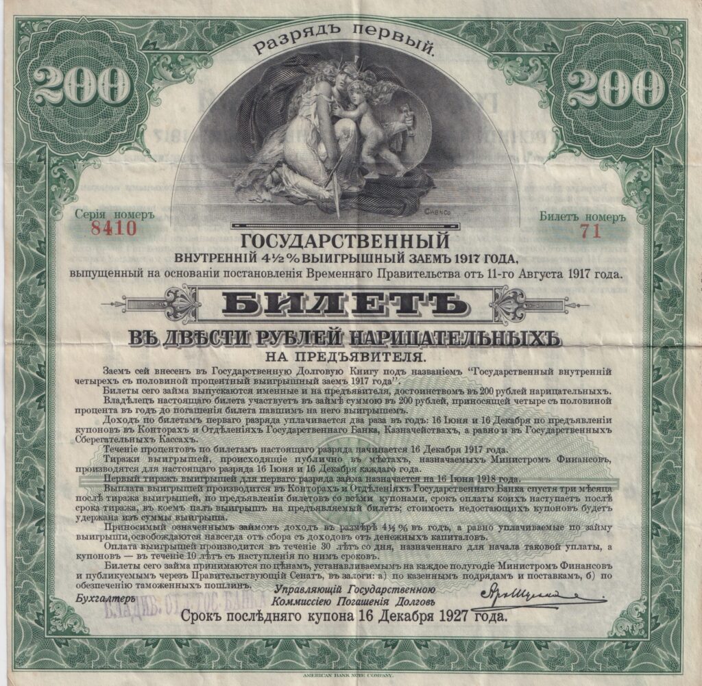 Russia Irkutsk Siberian Government Admiral Kolchak 200 Rubles 1917