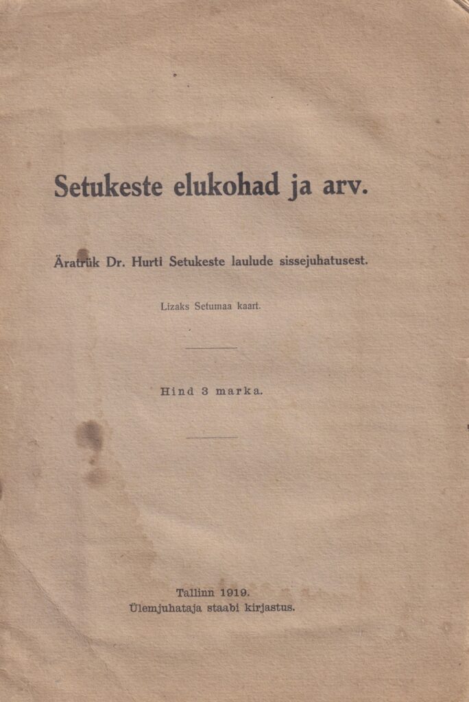 Setukeste elukohad ja arv 1919
