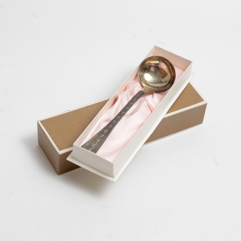 Kasutamata hõbedast kulp Tsentraal prooviga 916. Toote pikkus on 180 mm.