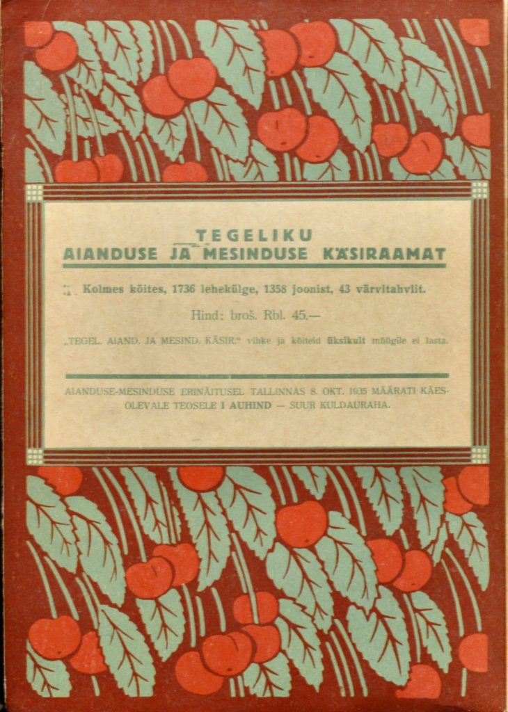 Tegeliku aianduse ja mesinduse käsiraamat. I / peatoimetaja J. Port ; kaastöölised K. Hinno, O. Kramer, E. Lepik … [jt. ; kaas ja illustratsioonid: R. Kivit] |