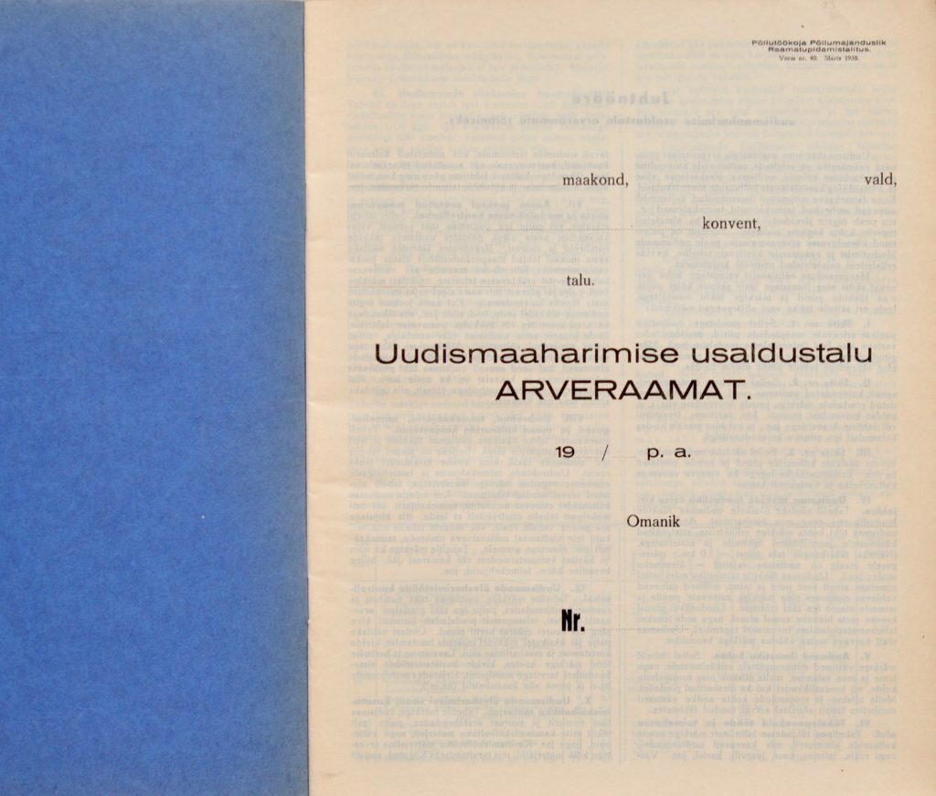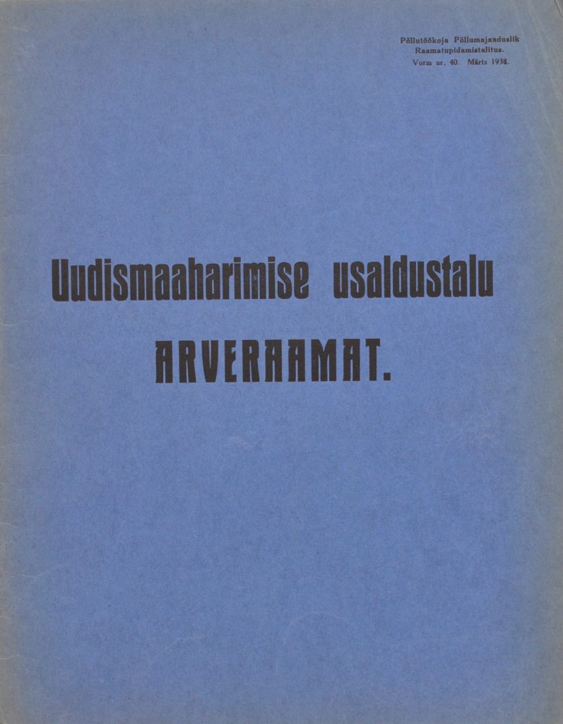 Uudismaaharimise usaldustalu arveraamat 1938 kasutamata