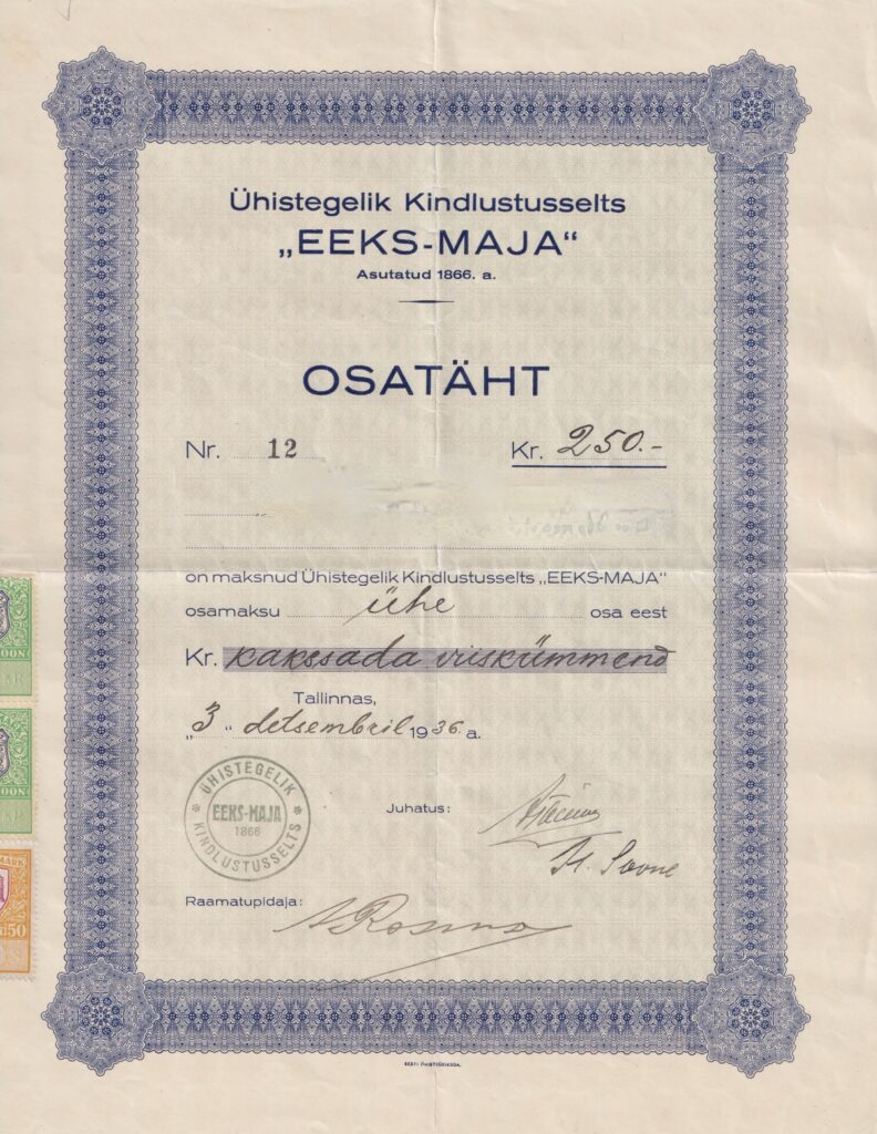 Ühistegelik Kindlustusselts EEKS-MAJA 1936 Kr 250