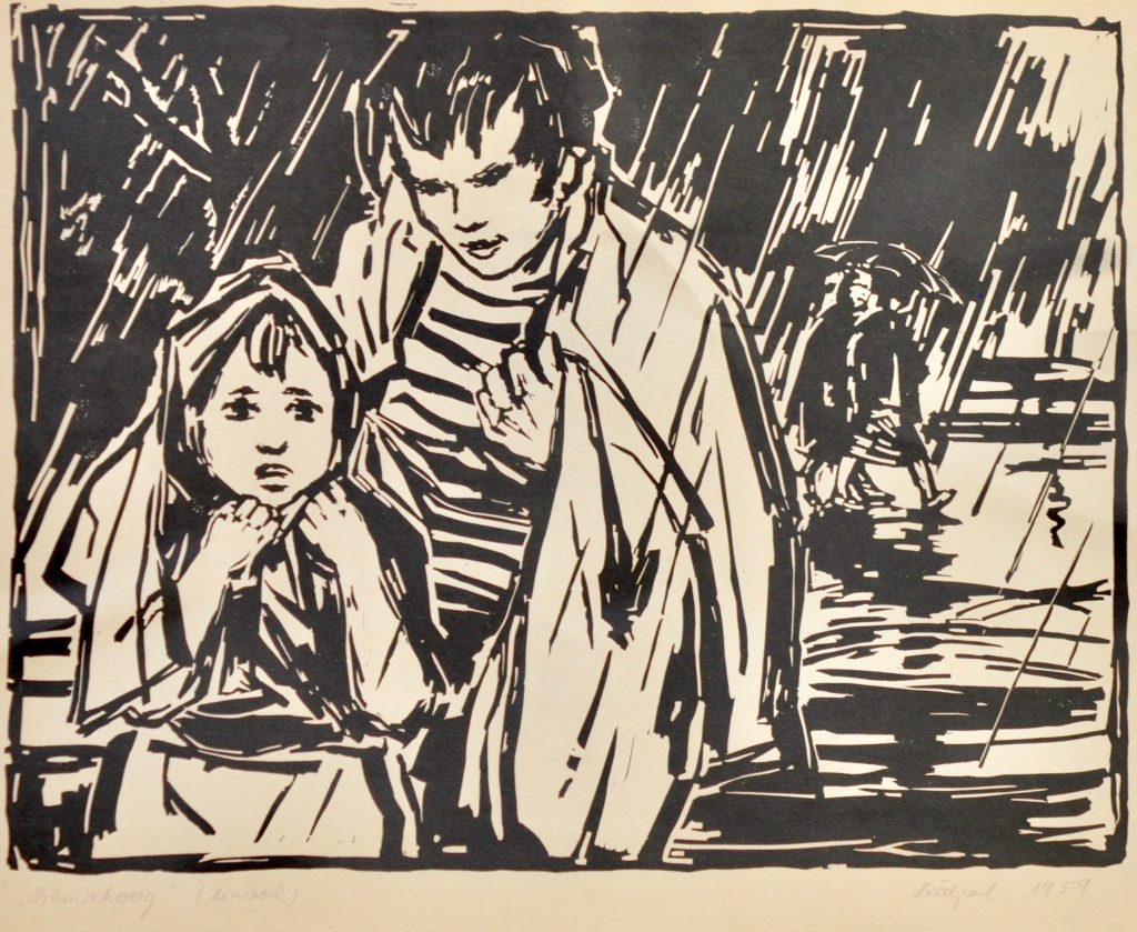 “Vihmahoog” linool 1959 kujutis 26,5×35 cm leht 32×44 cm